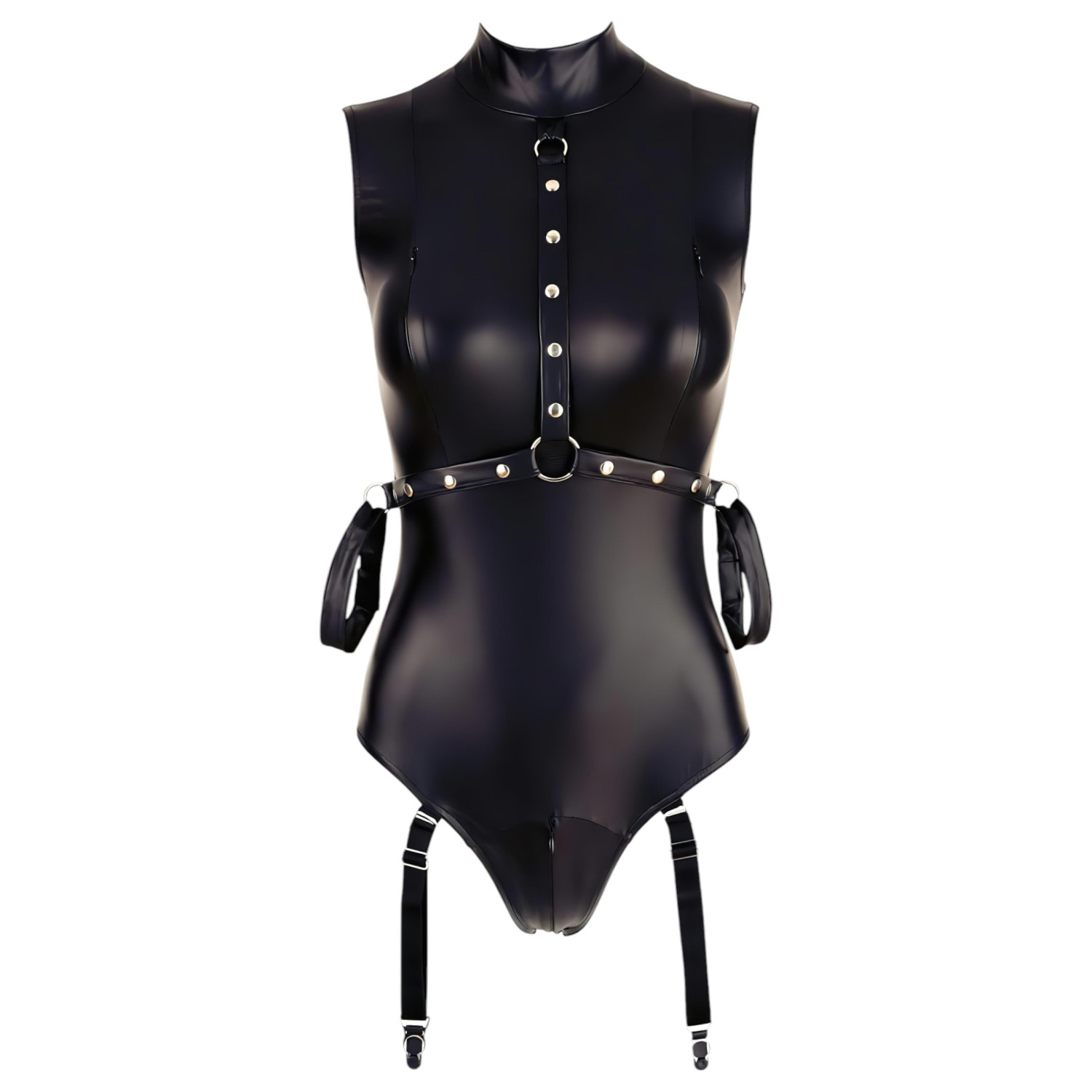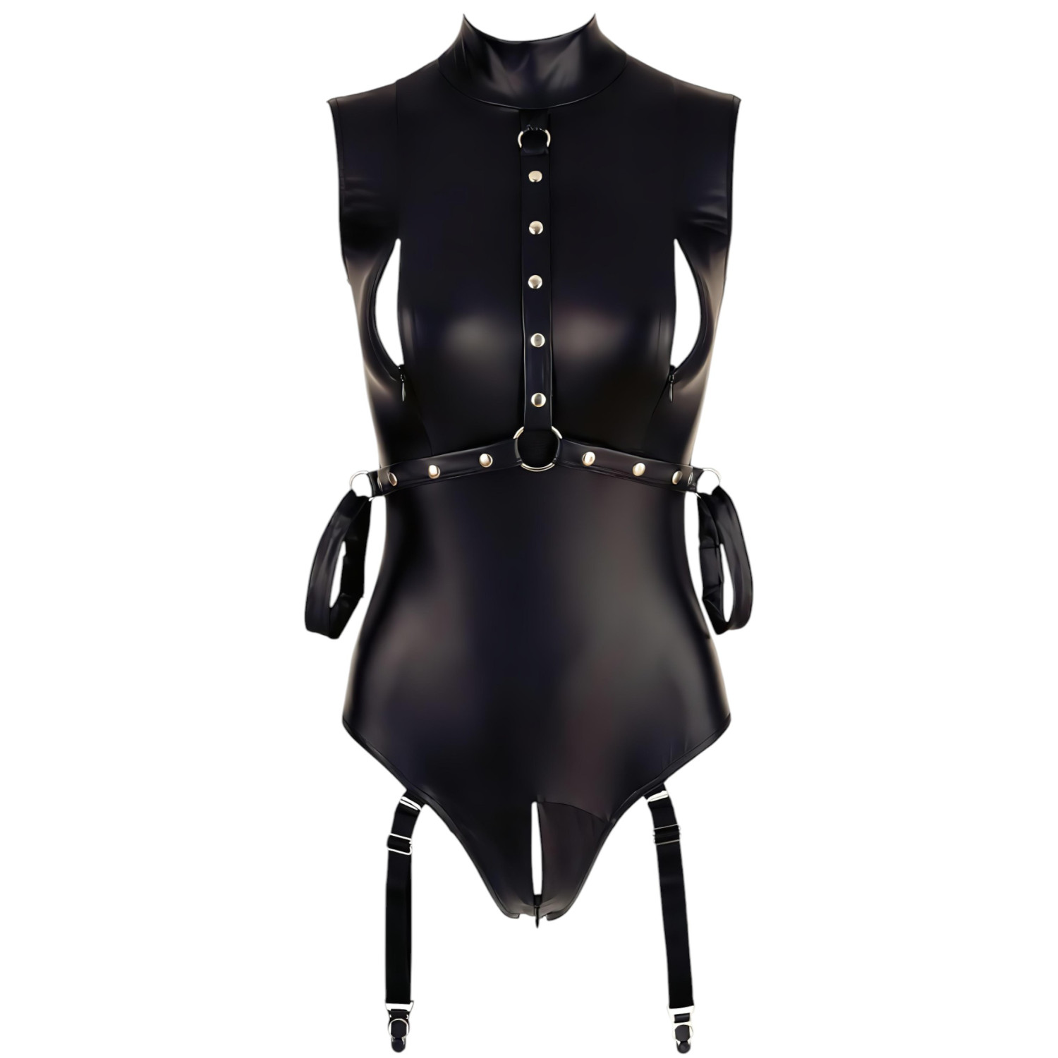 • 1 ks lesklého body s efektem kůže, podvazky a zabudovanými pouty na ruce