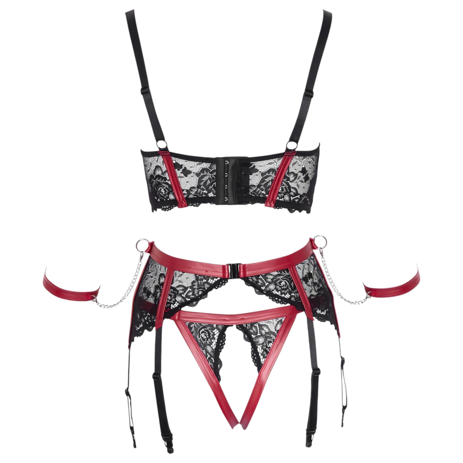 Opravdový krajkový klenot s sexy červenými vsadkami a pásky, které jemně vedou pohled přes tvoje nejkrásnější partie!
