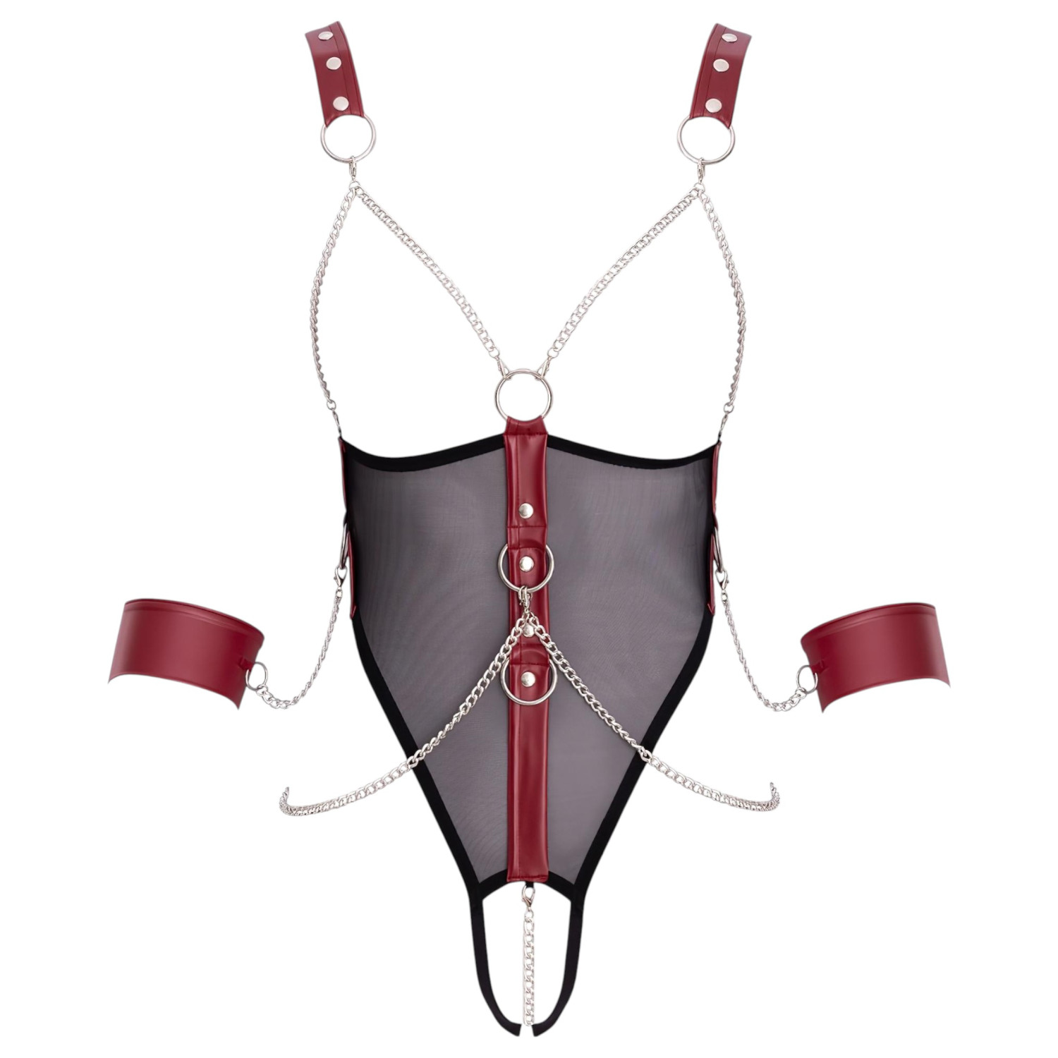 Uvolněte svou vášeň s otevřeným body Cottelli Bondage s popruhy, řetízkem a měkkými pouty!