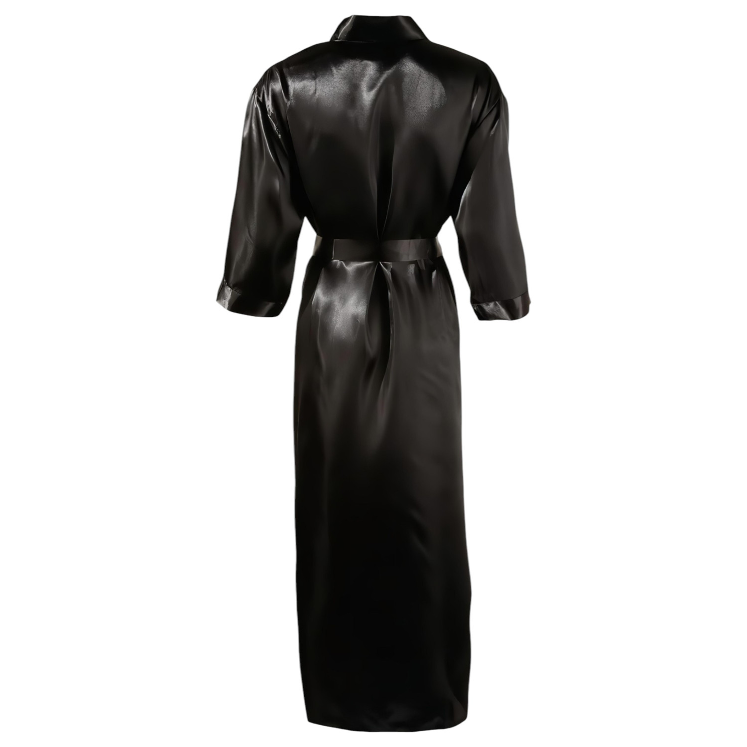 Dlouhý saténový župan s praktickým páskem.
