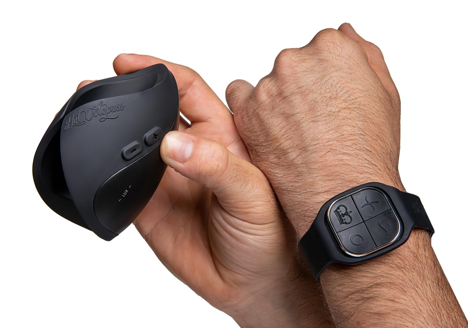 S bezdrátovým ovladačem ve stylu hodinek je ovládání hračka. Tlačítky přepínáš mezi 5 vibračními módy a nastavuješ 8 stupňů intenzity.