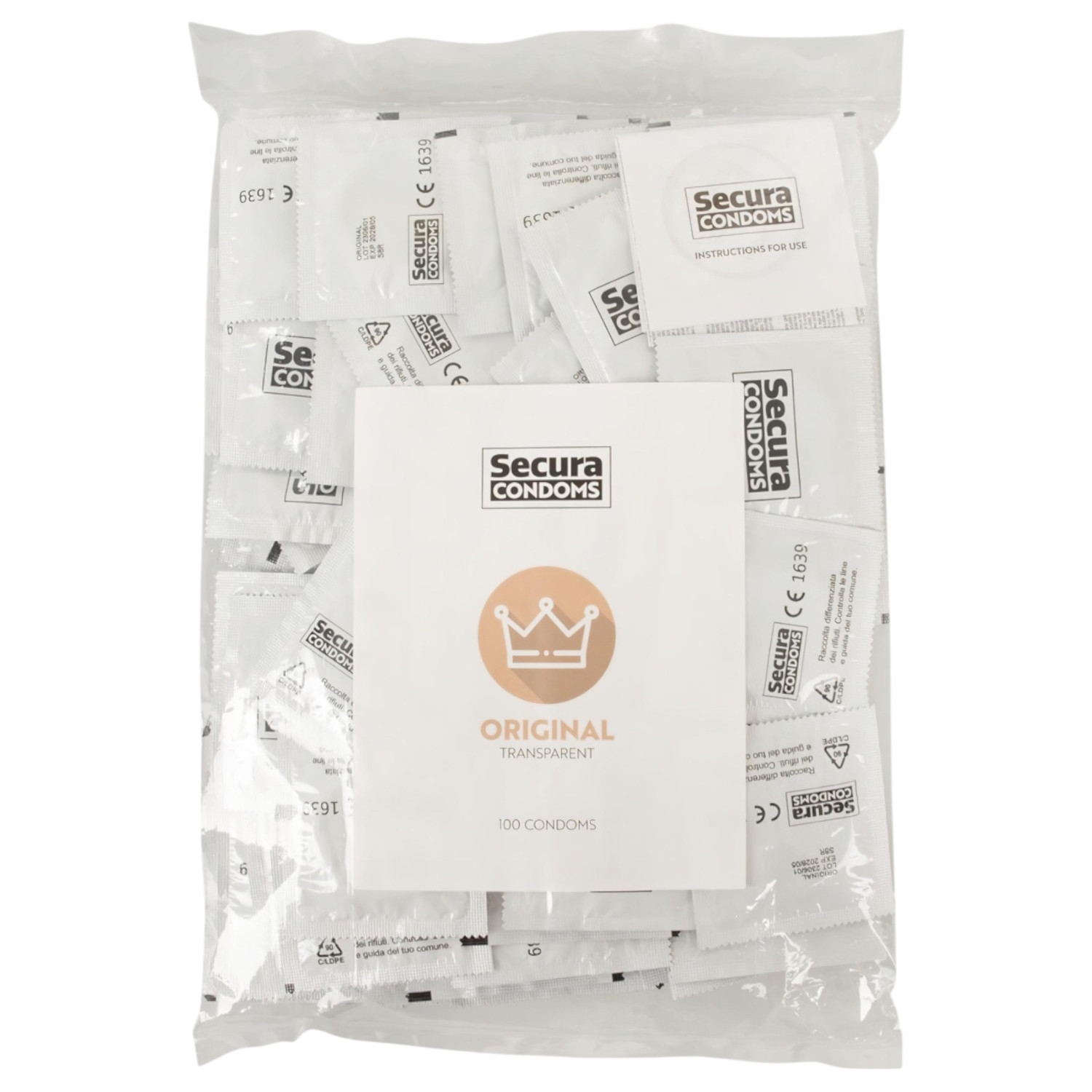 • 100 průhledných kondomů lubrikovaných silikonovým gelem