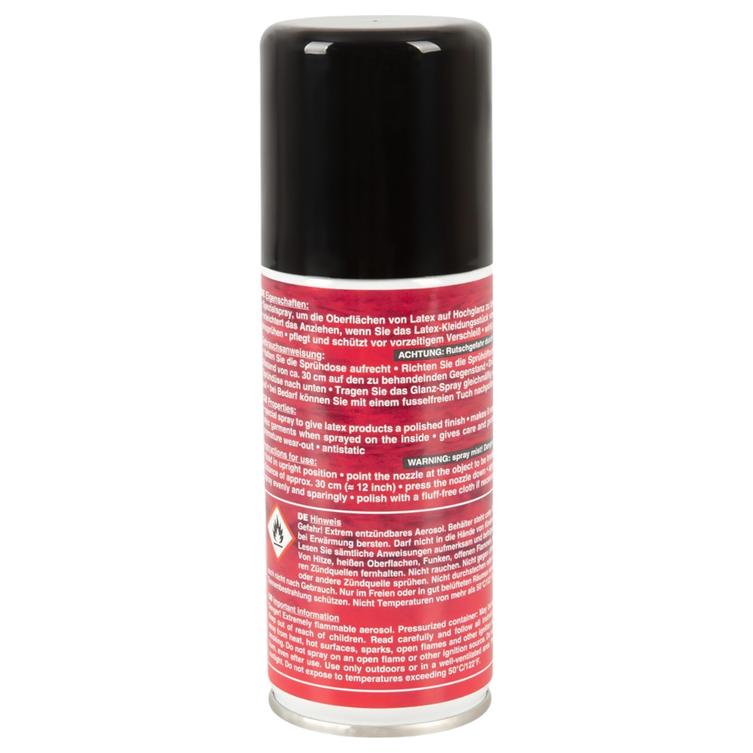 • Nastříkej rovnoměrně na čistý a suchý povrch latexového oblečení nebo doplňku ze vzdálenosti asi 20 cm.