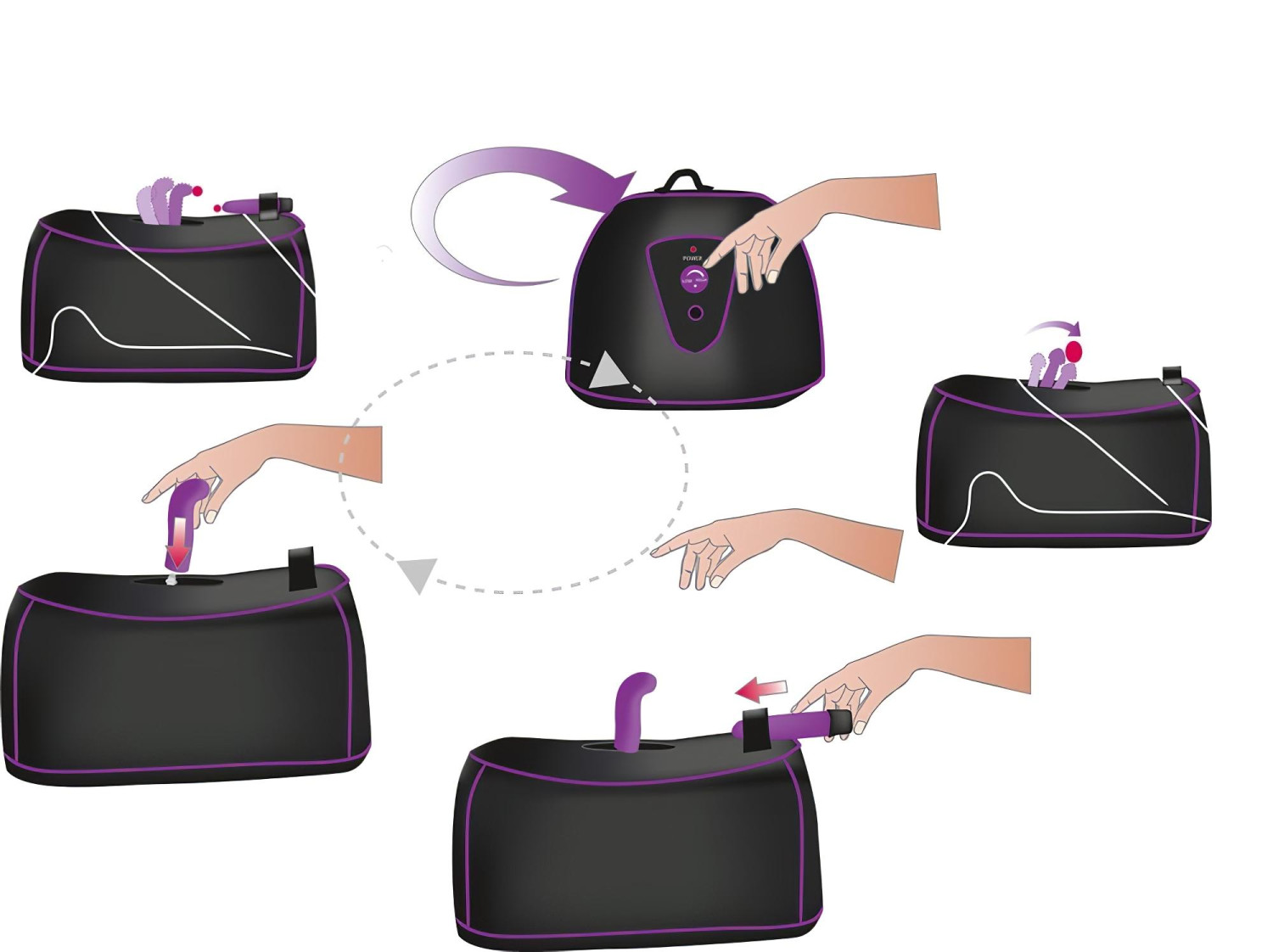 Vyber si silikonový nástavec, zasuň ho do stroje a připoj k síti. Pomocí otočného ovladače na boku nastav rychlost otáčení podle chuti. Pokud chceš ještě víc, vlož přiložený vibrátor do slotu a užívej si dvojitou rozkoš!